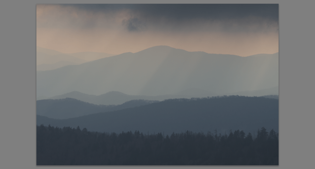 I recently visited Great Smoky Mountain National Park. I bracketed three shots. One with normal exposure, one -1 stop, and one +1 stop.
