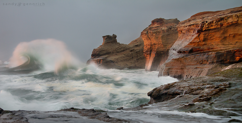 4. Ricochet. Taken on the Pacific Coast at Cape Kiwanda. I love the tension in this shot as the wave ricochets off the cliff wall and starts its way back out to sea.